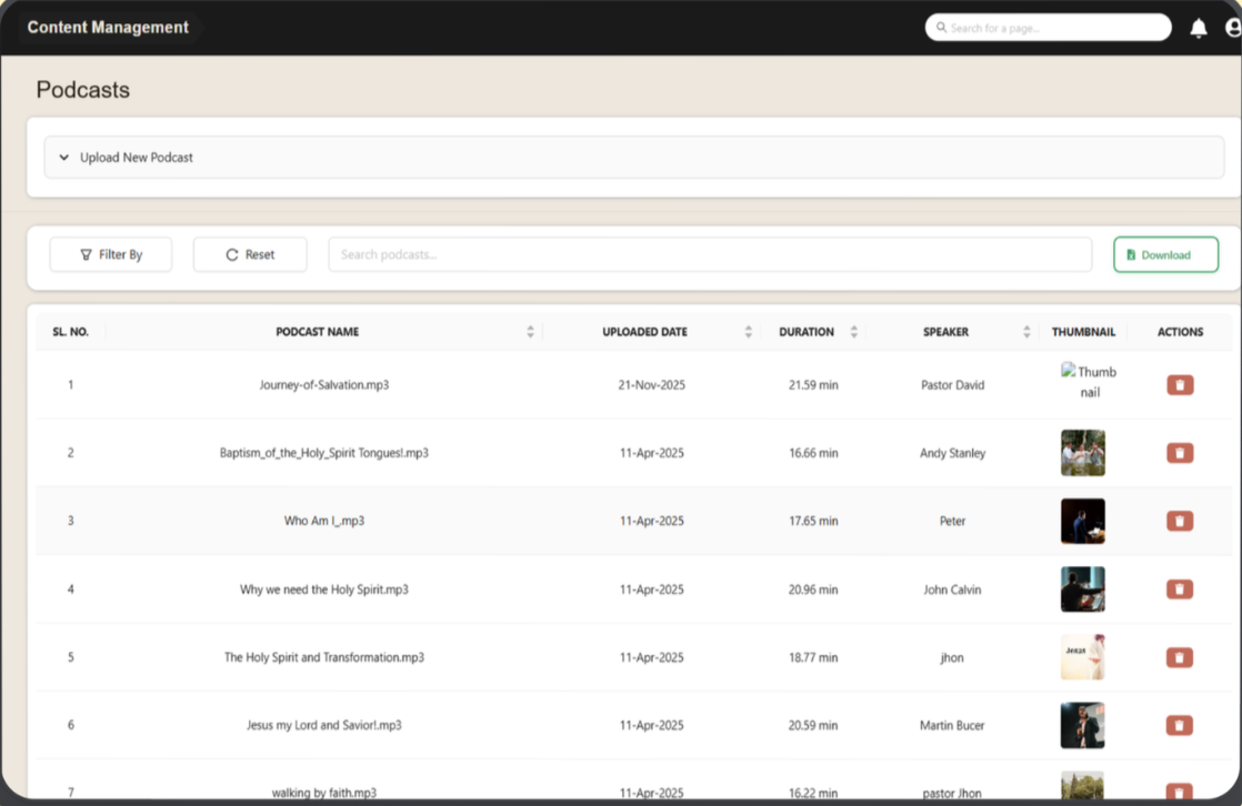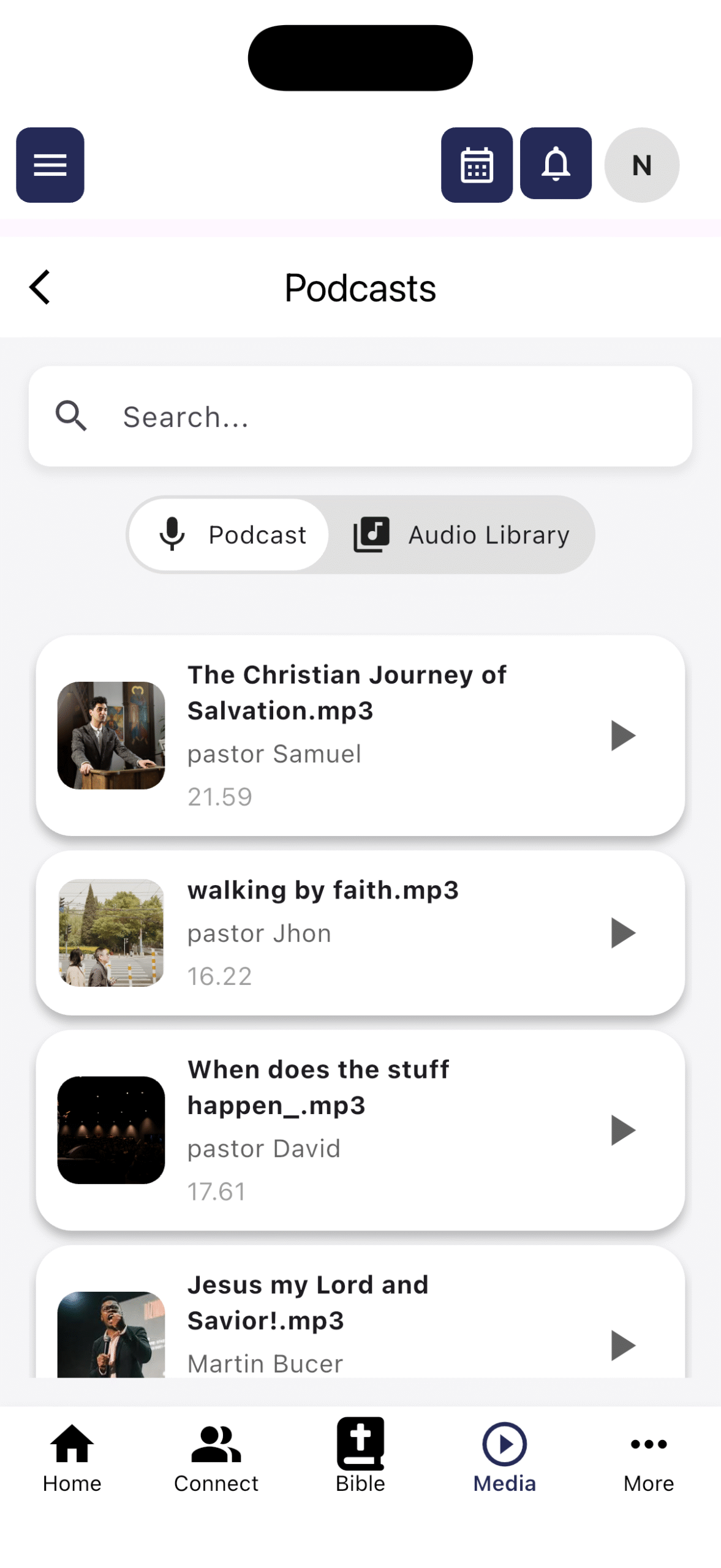 • Podcasts: Access church podcast content