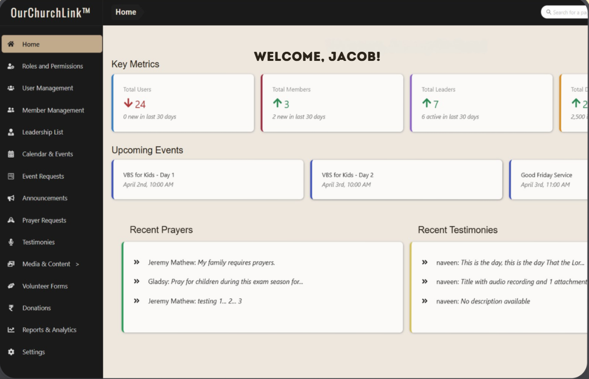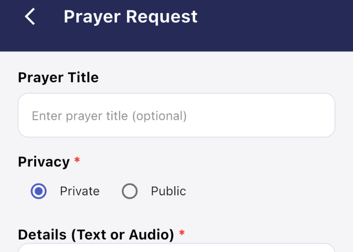 • Prayer Requests: Submit and view prayer needs