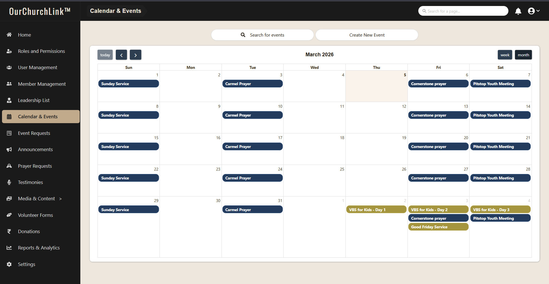 📅 Church Events Calendar