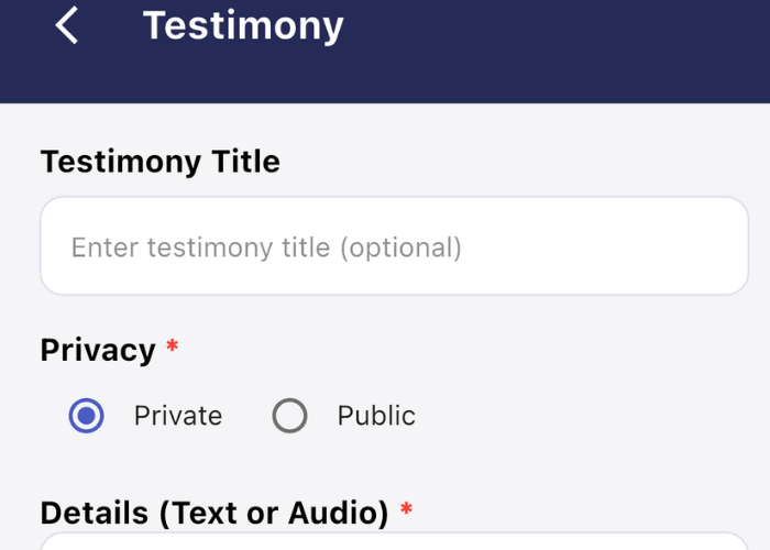 • Testimonies: Share and read testimonies