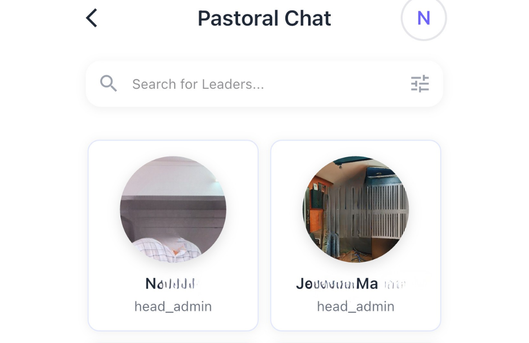 • Pastoral Team: Chat with church leaders