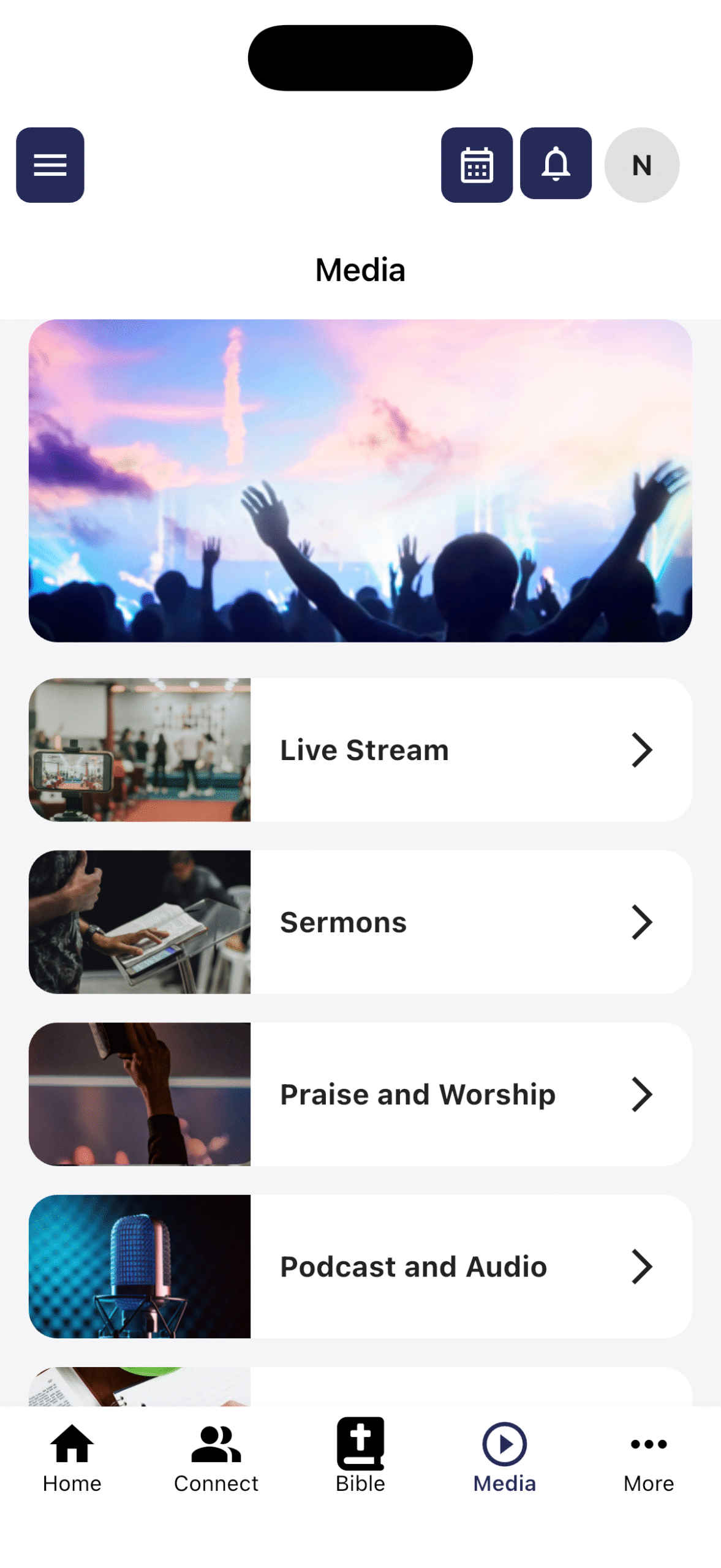 • Organized by categories (events, sermons, youth group)