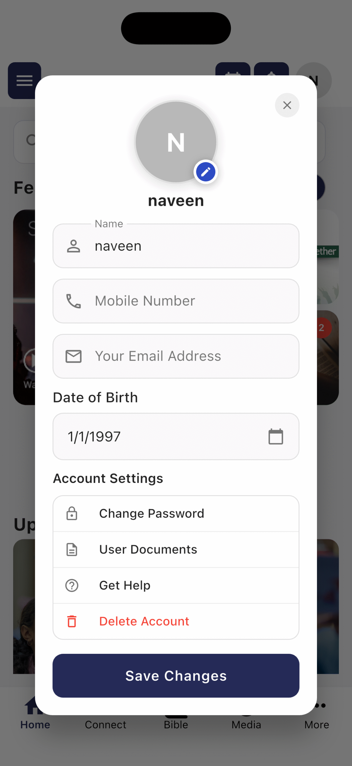 • Profile Photo —  tap the pencil icon to update via Camera or Gallery